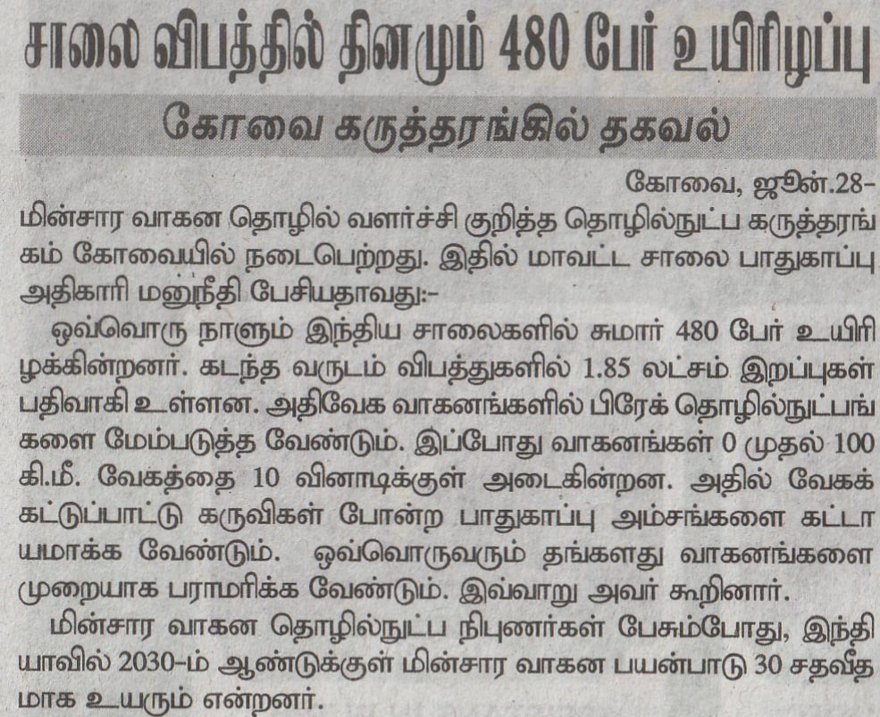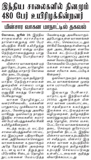 Electric Vehicles – The Future of Transport - Daily Thanthi