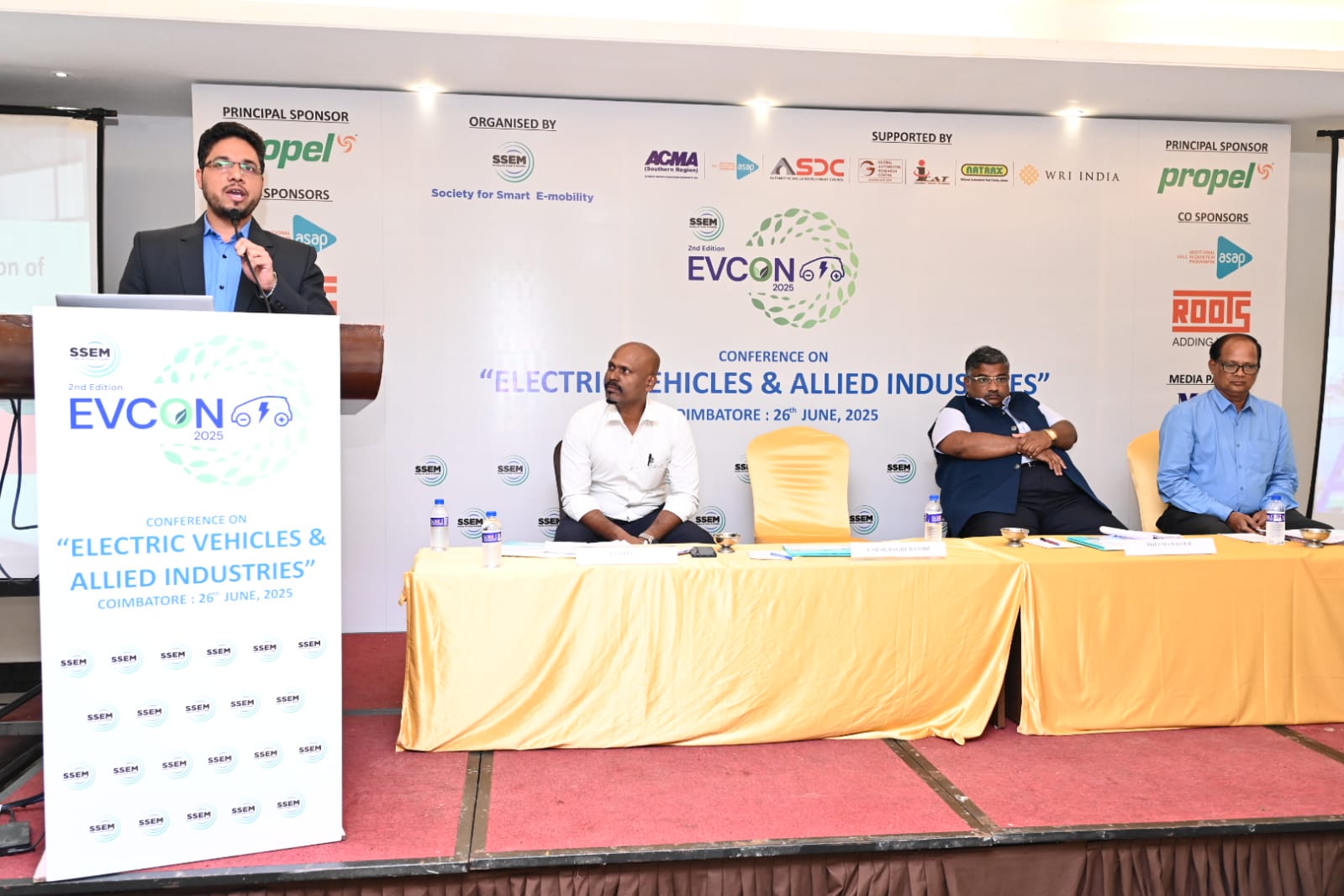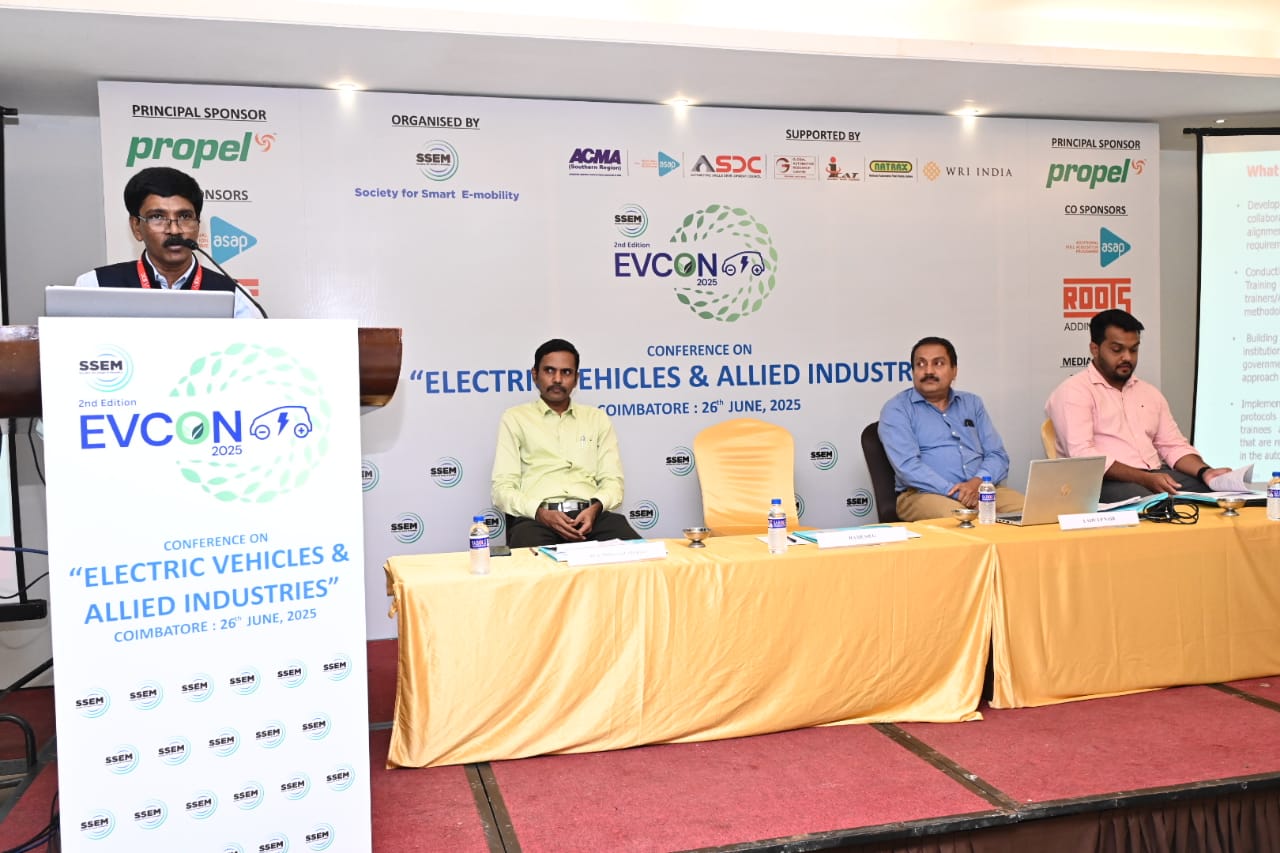 The Conference on Electric Vehicles & Allied Industries was held on 26 June 2025 at Hotel KISCOL Grands, Coimbatore, exploring the theme “Electric Vehicles – The Future of Transport.”
